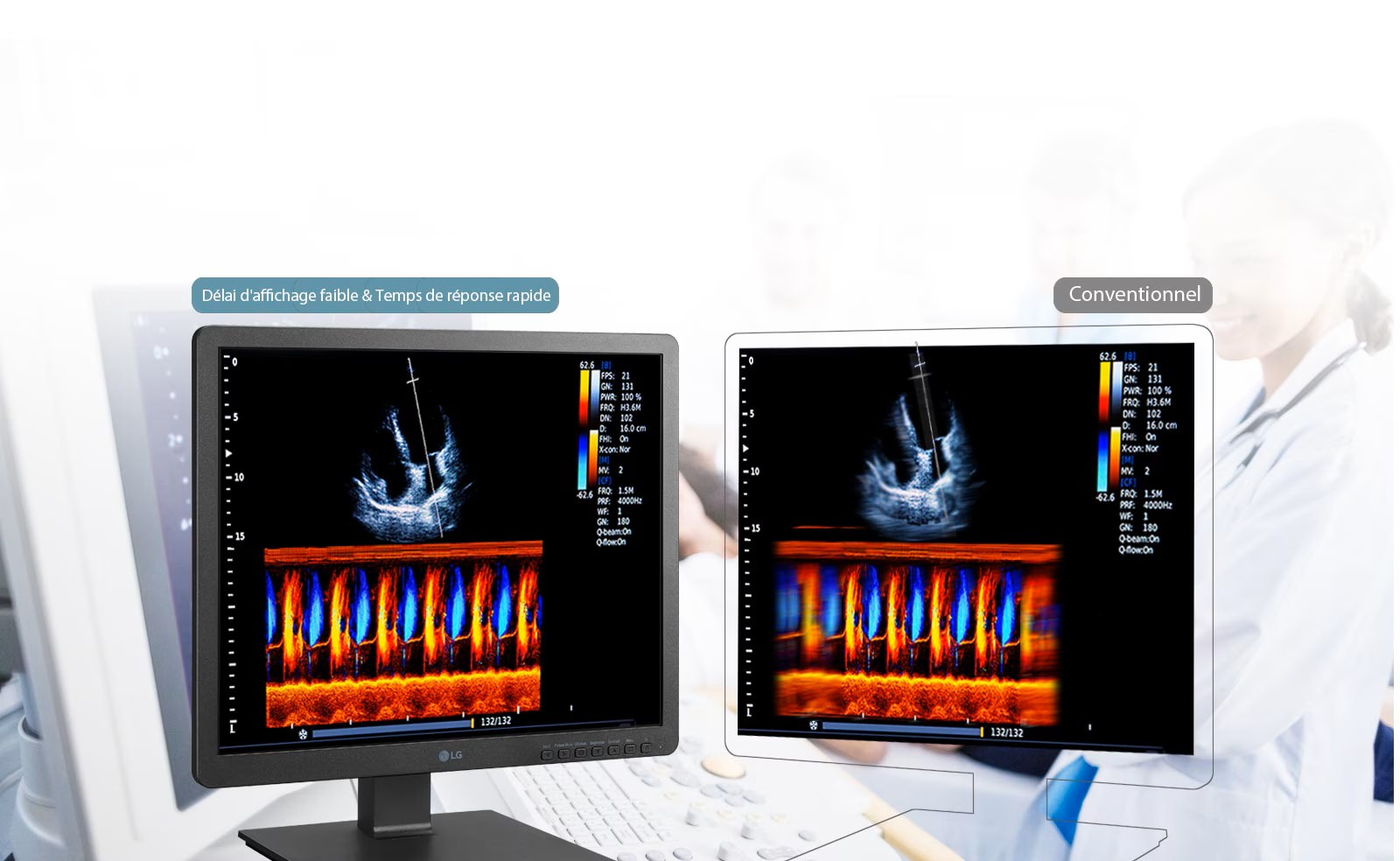 Un délai d’affichage faible et un temps de réponse rapide permettent au moniteur de recevoir un signal rapidement et d’afficher une image claire sans distorsion. Ainsi, le décodage des informations est précis pour un examen efficace.